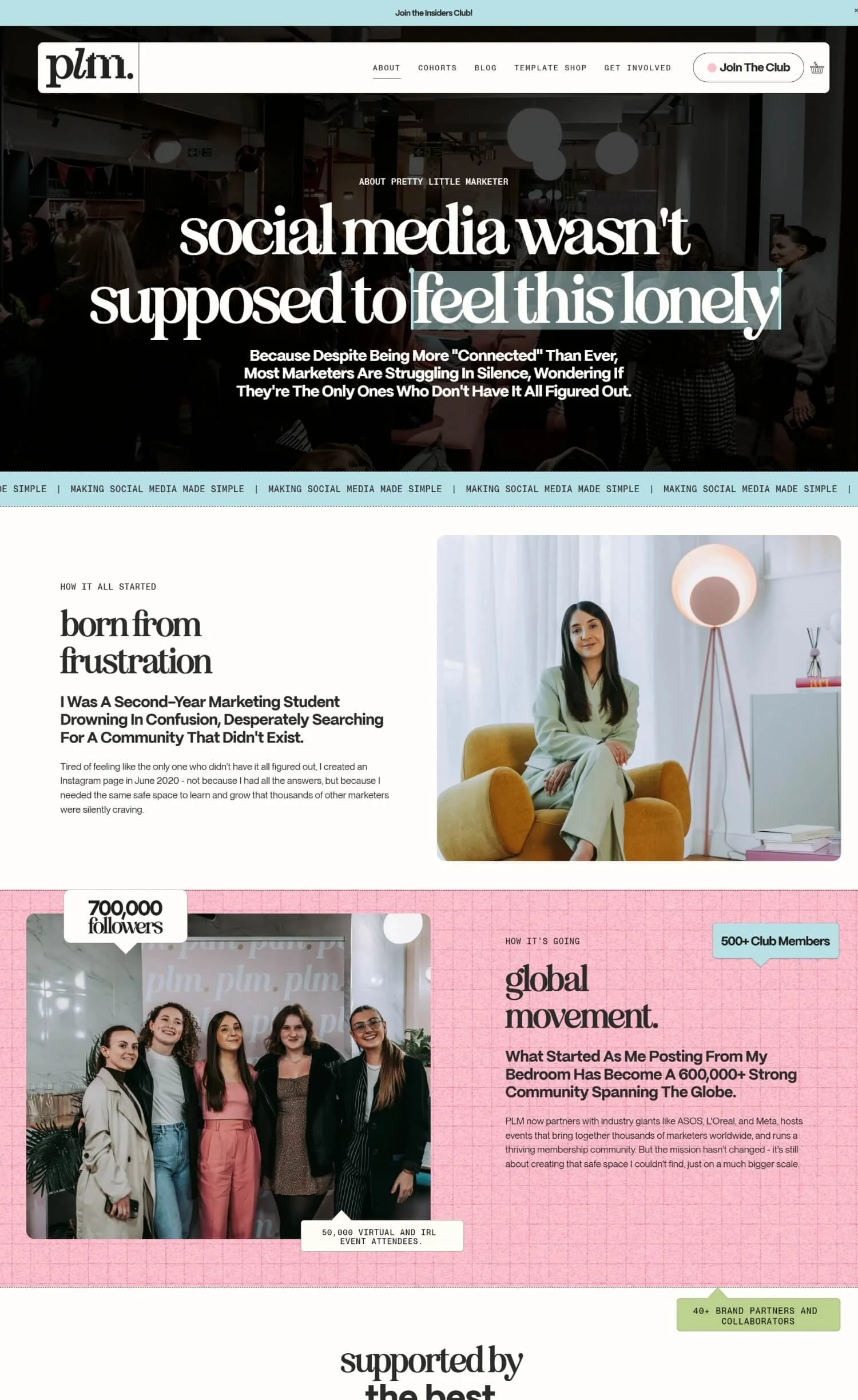 Squarespace design & development for Pretty Little Marketer, the community for social media marketers